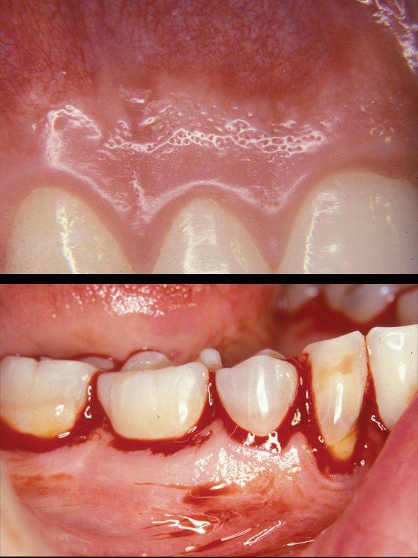 In health, the gum forms a crevice around the neck of a tooth. When bacterial plaque has not been adequately cleaned away from this crevice, the tissue becomes infected and swells. This tissue infection is called “gingivitis”. The tissue swelling deepens the normally shallow crevice, providing a larger “niche” for more bacteria, thus more infection.