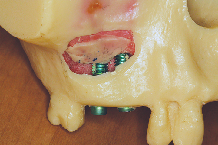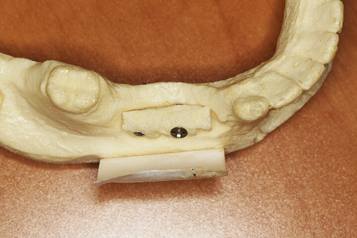 Ridge grafting is reserved for situations where there has been marked bone loss at the site planned for implant placement. In these cases, the patient’s own bone is harvested from an adjoining area and fixated at the planned implant site. Cadaver bone and membrane material are also added to enhance healing. Implant placement is performed after bone maturation is complete.