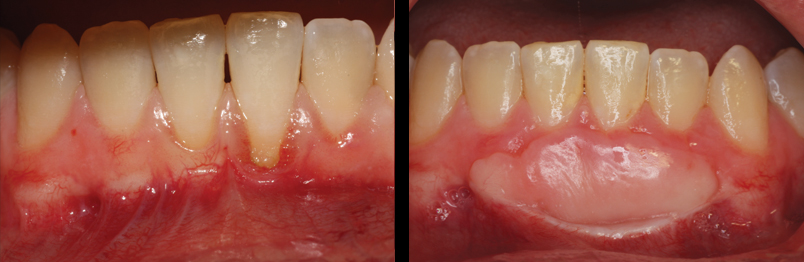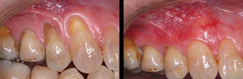 At times tissue (gum) around the teeth can strip away. This stripping process is called “recession”. Once a recession begins, it tends to progress with time. A recession can jeopardize the retention of your teeth and in certain situations cause a cosmetic problem. There is a treatment option for each of these issues. A i) Gingival Graft focuses on